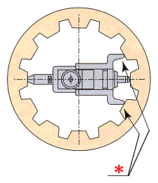 (centering mechanism) to support the gauges on top of the gear teeth. |